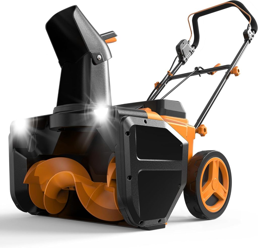 (My Recommendation) The Worklife Cordless Snow Blower cordless snow blower offers a budget-friendly entry into battery-powered snow removal, ideal for lighter snowfalls up to 8-10 inches on smaller driveways and paths. Its compact design with around 20-22 inch clearing width and 30-45 minute runtime per charge makes it easy to store and maneuver without cords.